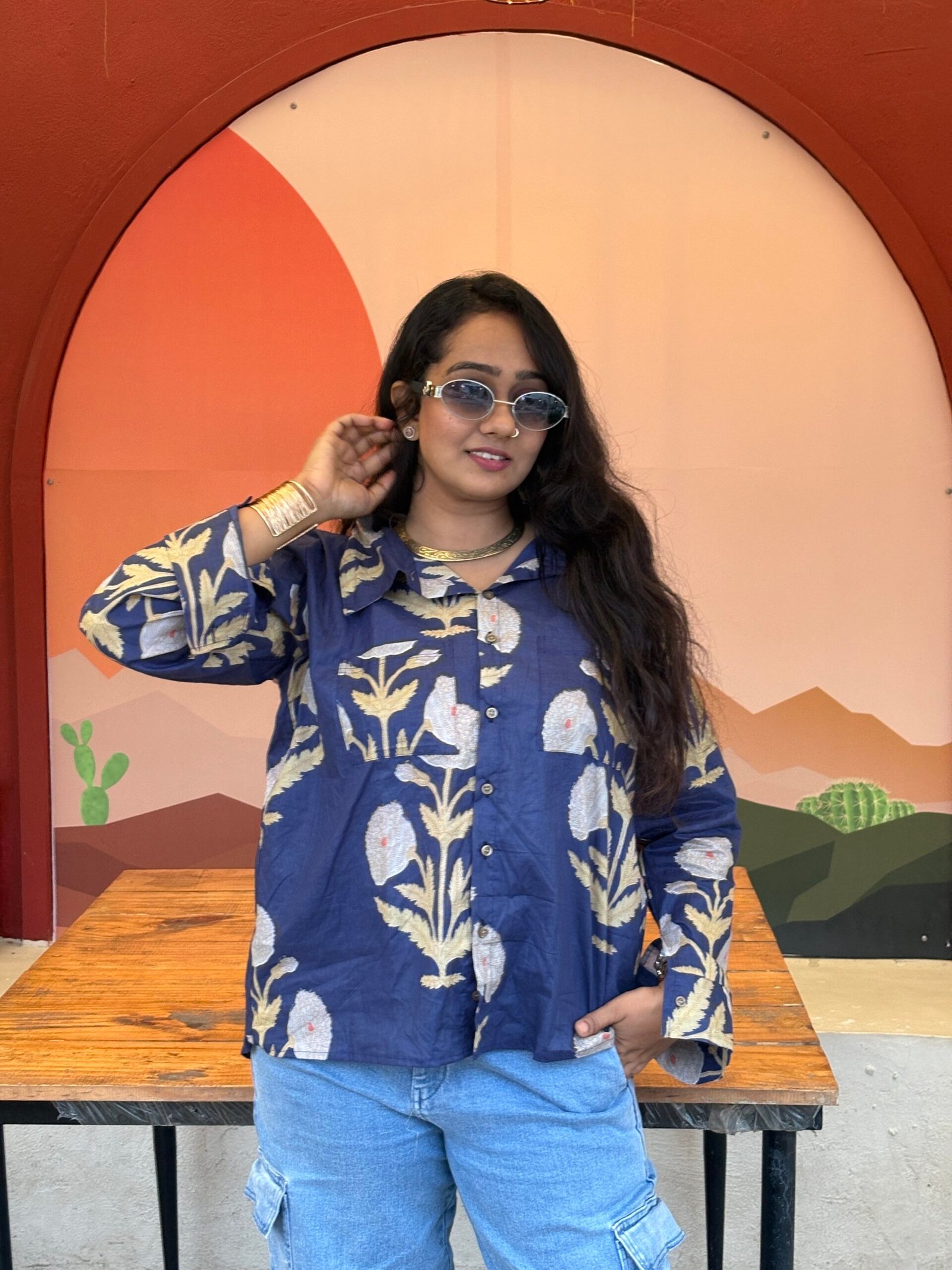Make a statement in comfort with our blue Jaipuri floral oversized shirt, crafted from ultra-soft cotton that feels like a dream on your skin. Featuring timeless handblock floral prints inspired by Jaipur’s rich heritage, this shirt blends traditional charm with modern oversized style.