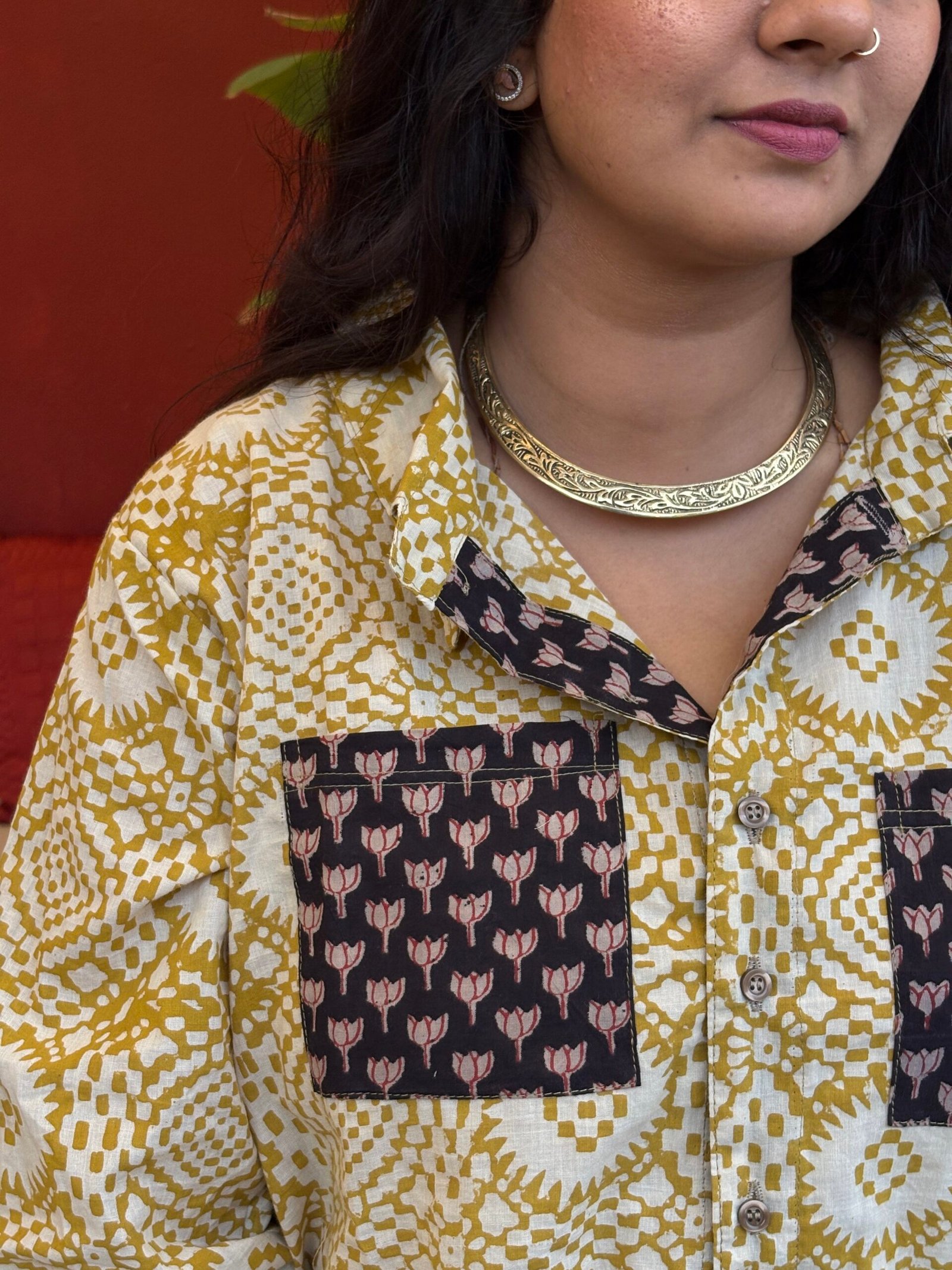 Crafted in soft cotton, this shirt features traditional Dabu handblock prints with natural dyes. Earthy, elegant, and easy to style with denims or trousers — a perfect blend of comfort and heritage.